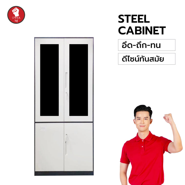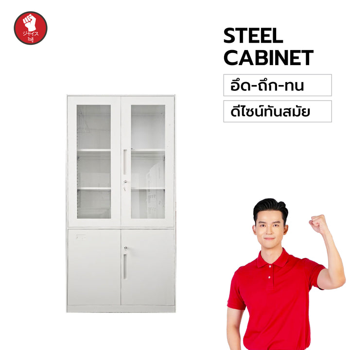 ตู้เหล็กสวย-ถึก! (Sunrise–暁光) รุ่น 2 บานกระจกบน ล่างบานปิดทึบ